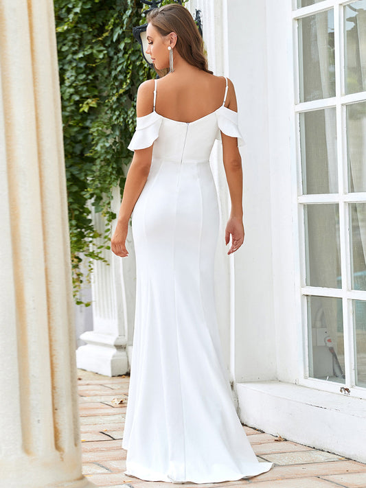 A Line Ruffle Sleeves Wholesale Wedding Dresses with split