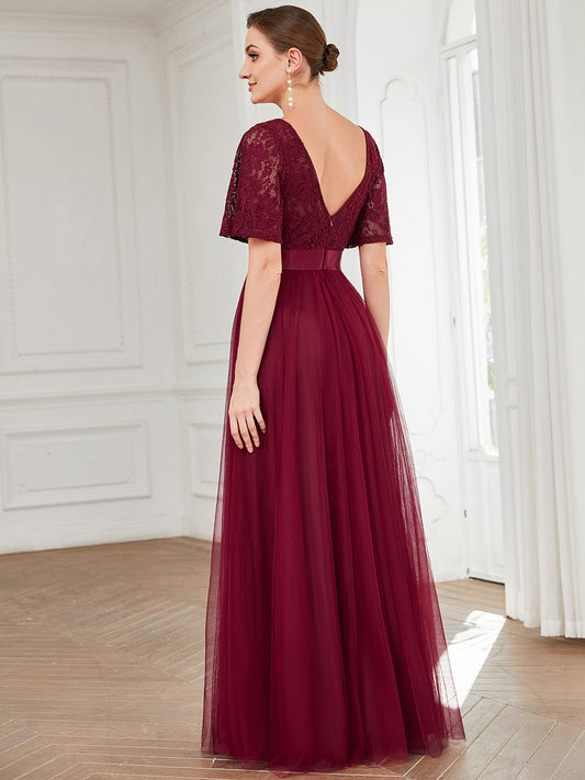 A Line Deep V Neck Floor Length Wholesale Bridesmaid Dresses