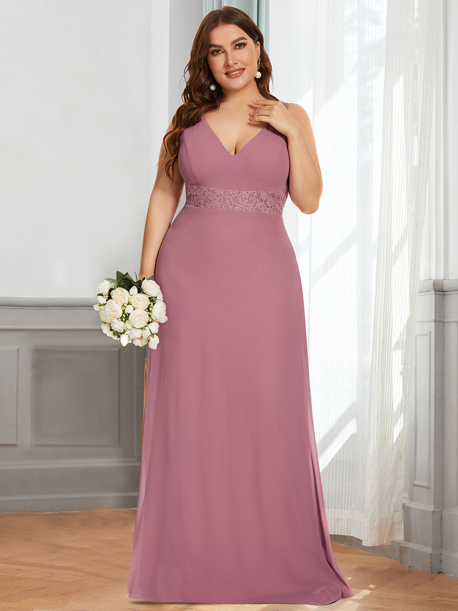 A-Line Sleeveless Backless Deep V Neck Wholesale Bridesmaid Dresses