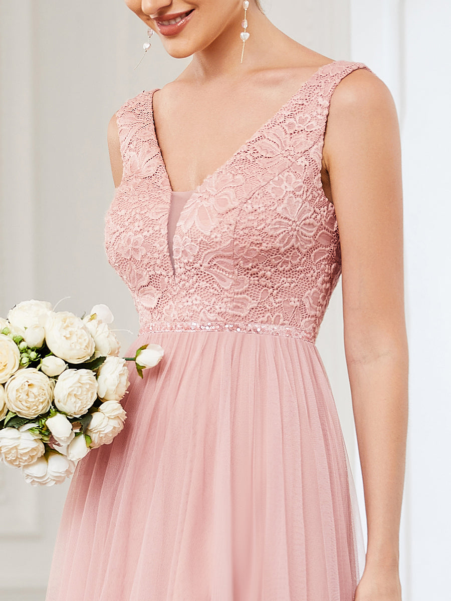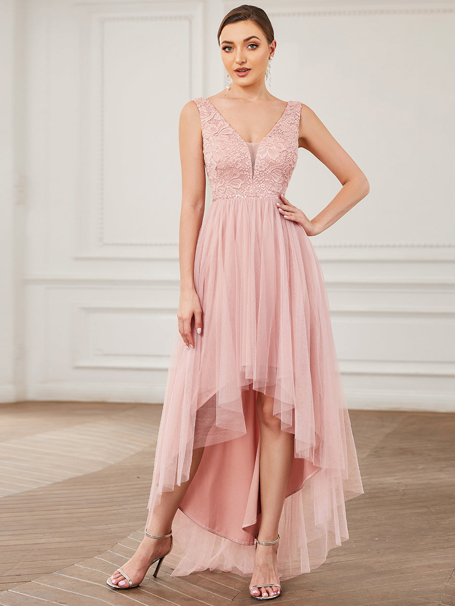 Catching everyone's attention has never been this easier. This bridesmaid dress will make sure all eyes on you as it features asymmetrical hem, and deep V-neck.