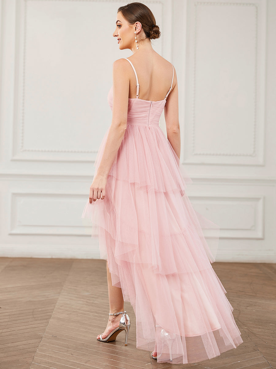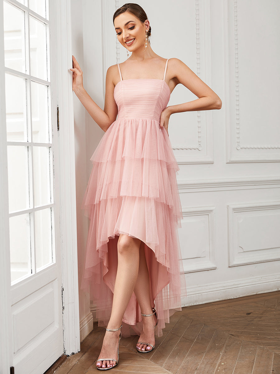 Spaghetti Straps Multi-Layered Hem Wholesale Bridesmaid Dresses
