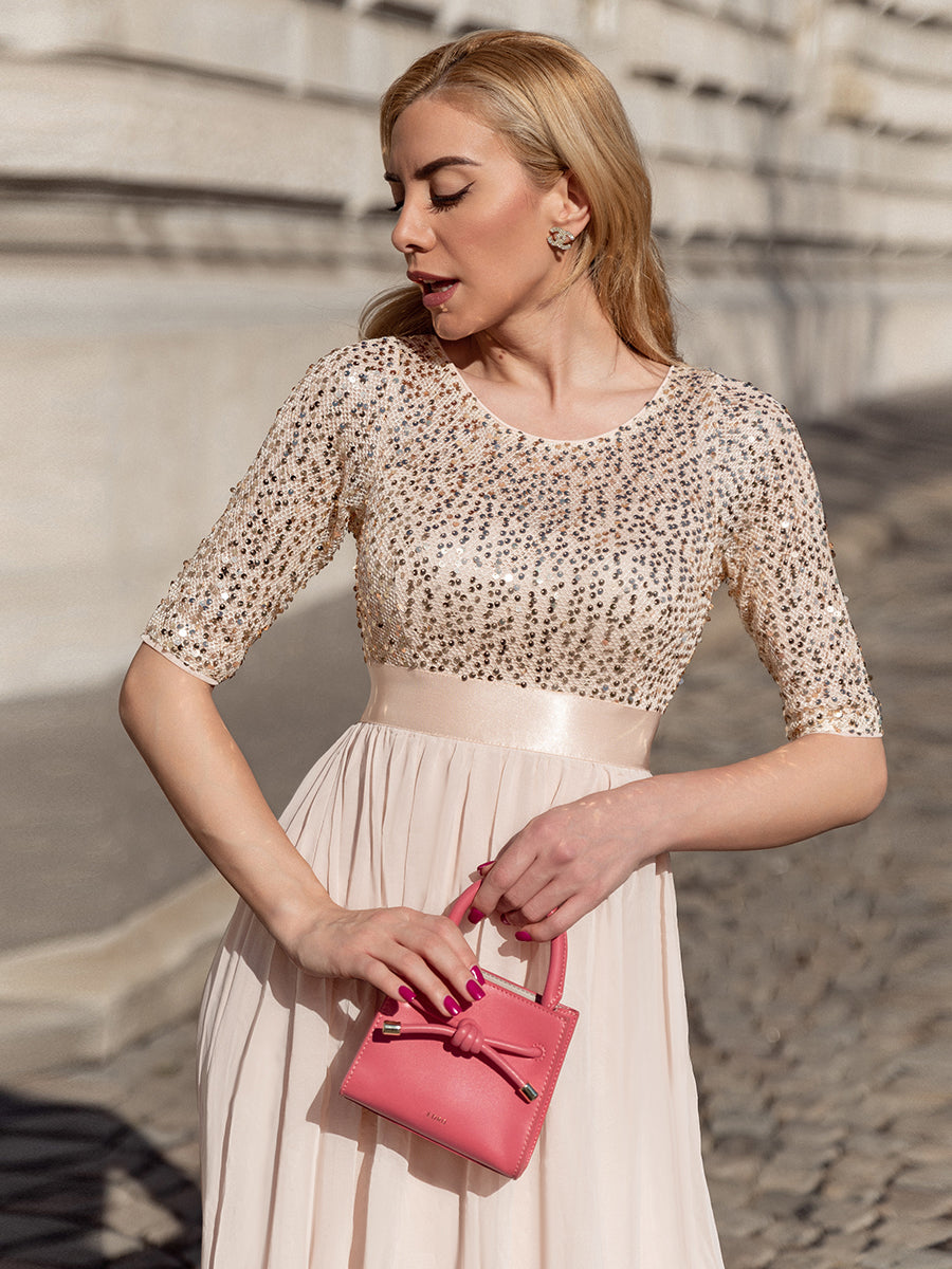 Elegant Round Neckline 3/4 Sleeve Sequins Patchwork Wholesale Evening Dress