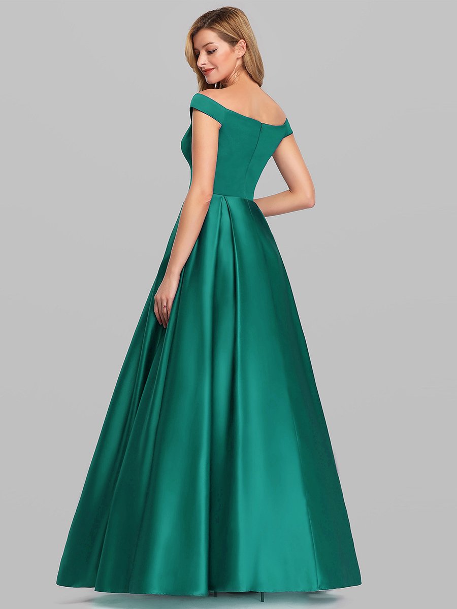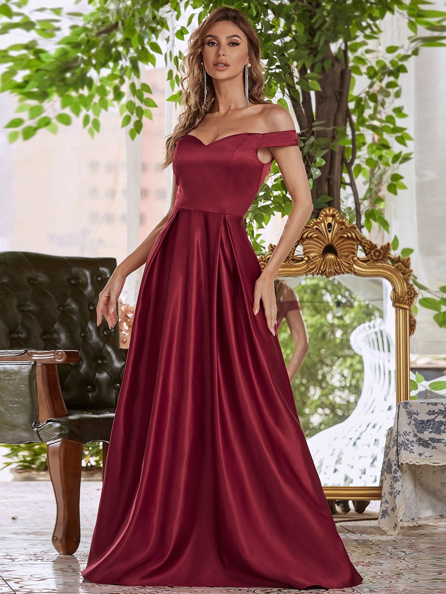 Featuring a sexy off the shoulder neckline, a fitted bodice and a flowy A-line skirt, this elegant wholesale evening dress is sure to be your closet staple for years to come. We think this gorgeous dress is perfect for evening party, cocktail, prom, homecoming, graduation, weddings, and any other formal affair!