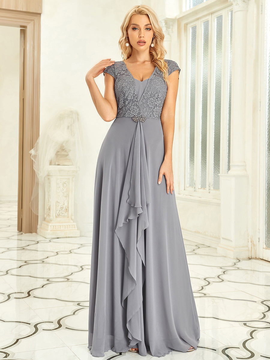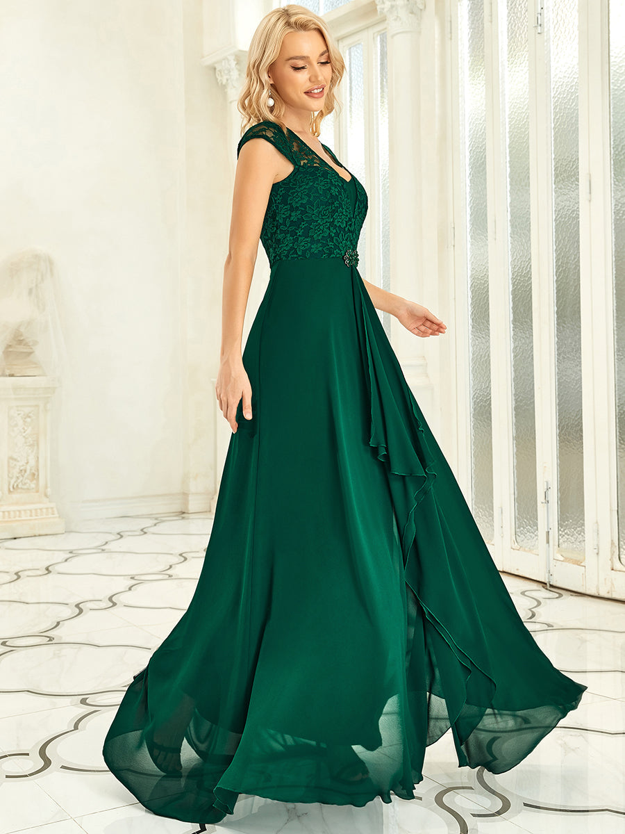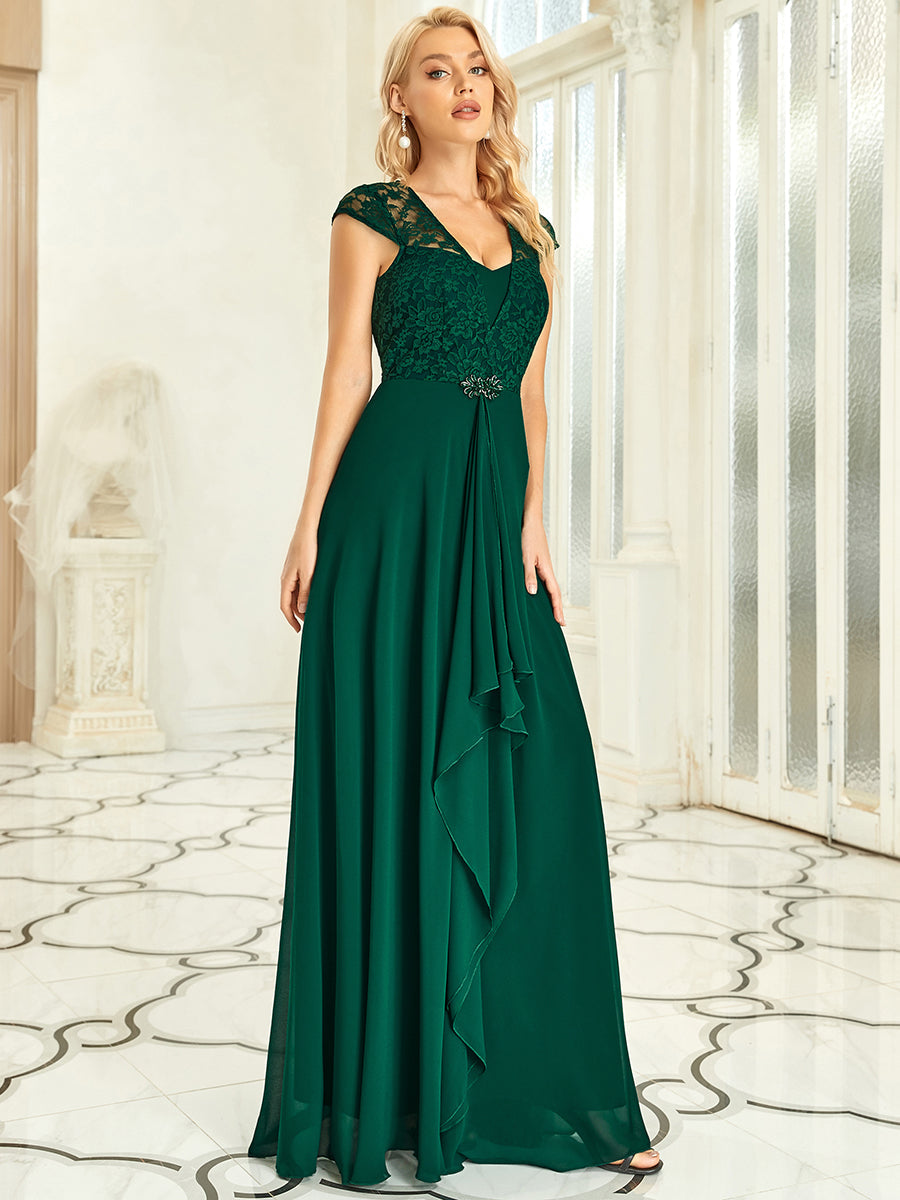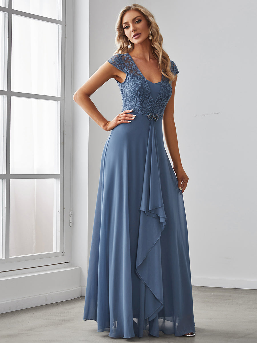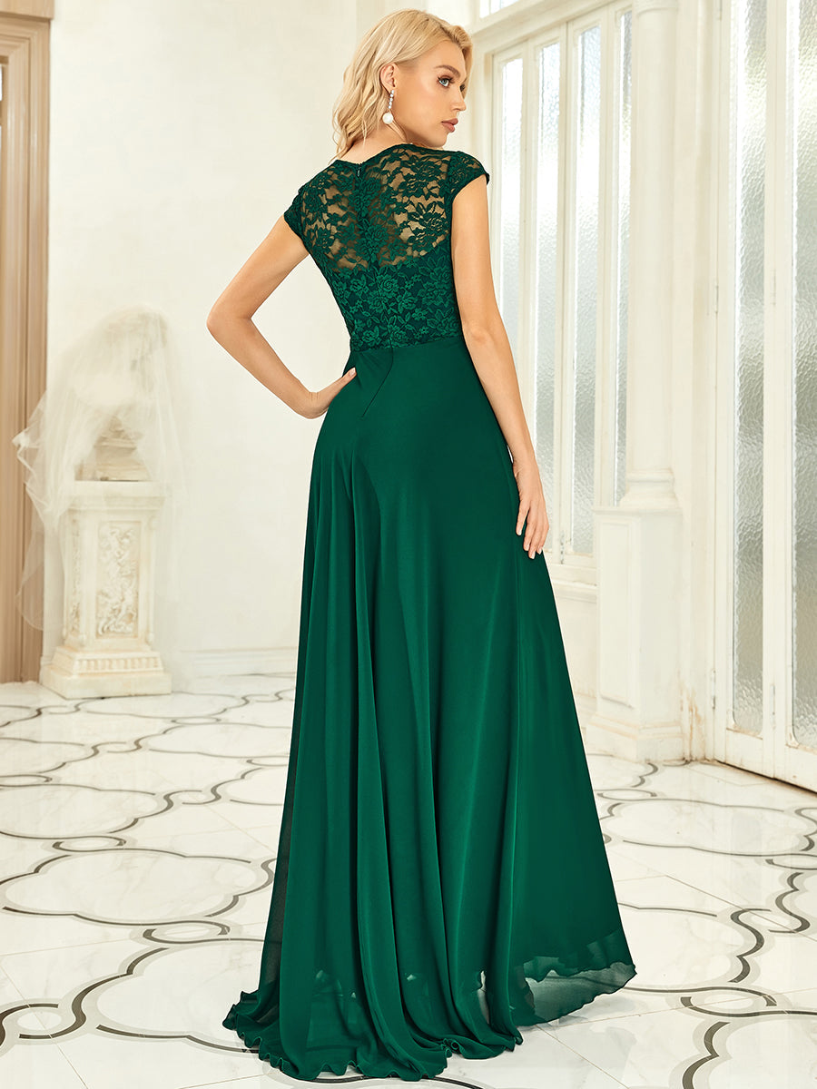 Featuring a deep sweetheart neckline,lace cap sleeves and a flowy A-line skirt,this beautiful bridesmaid dress is sure to be your closet staple for years to come.Which is perfect for evening party,cocktail,prom,homecoming,graduation,weddings,and any other formal affair!