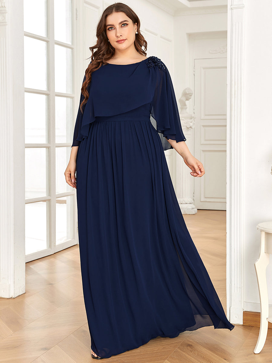 Looking for adorable mother of the bride dresses? This chiffon mother of the bride dress features a round neck, long ruffles sleeve, and an A-line silhouette.