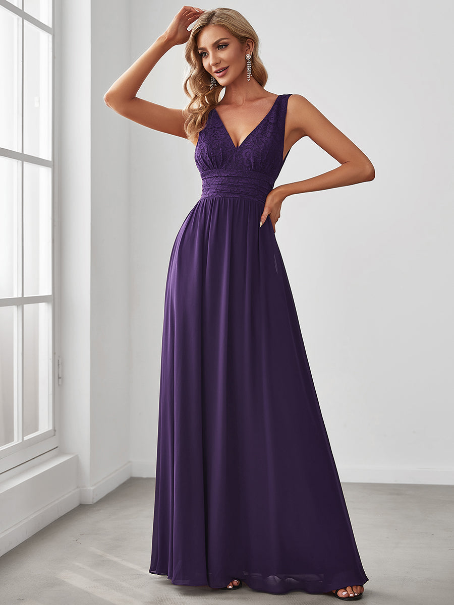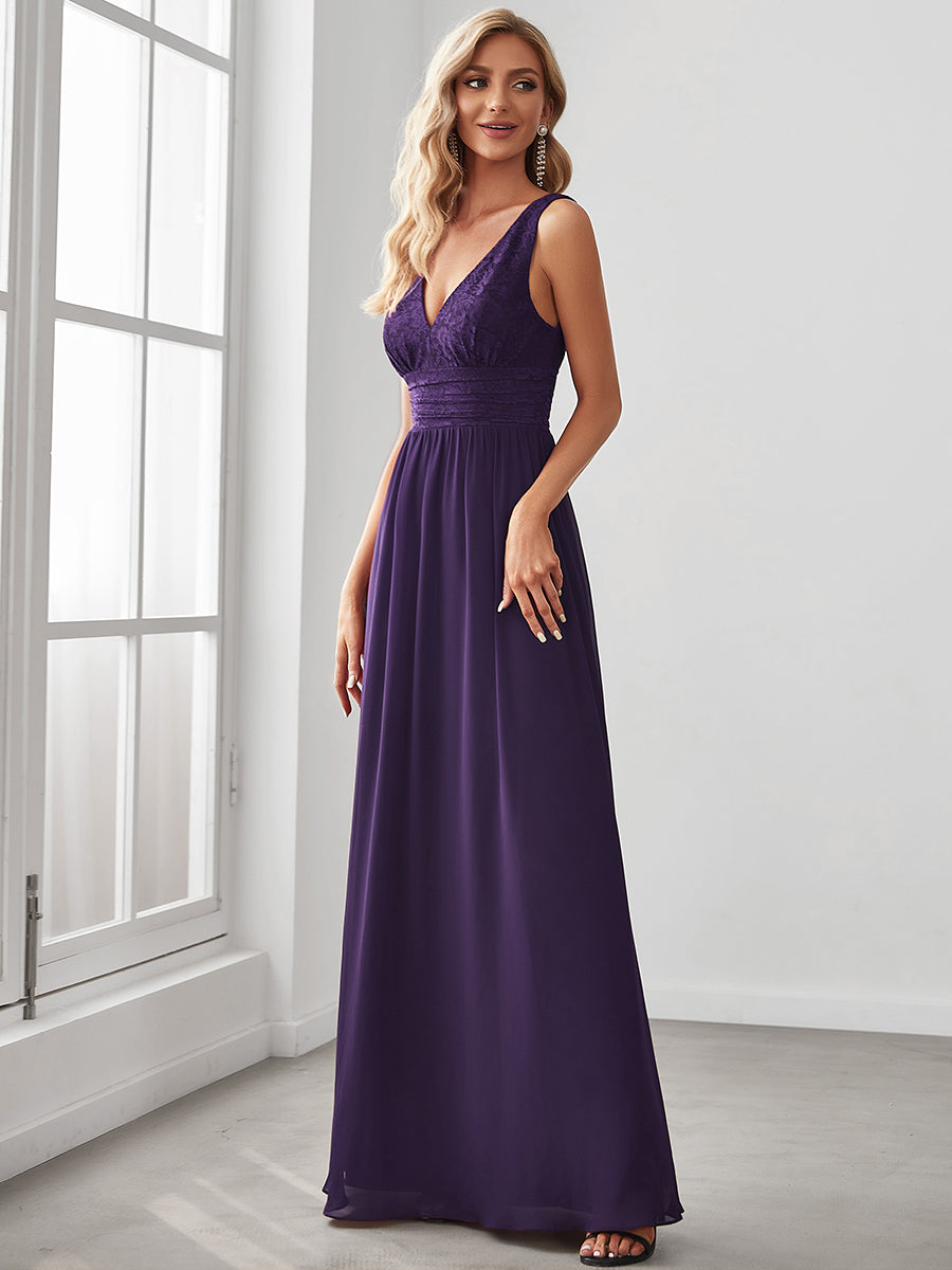 Deep V Neck A Line Sleeveless Wholesale Bridesmaid Dresses