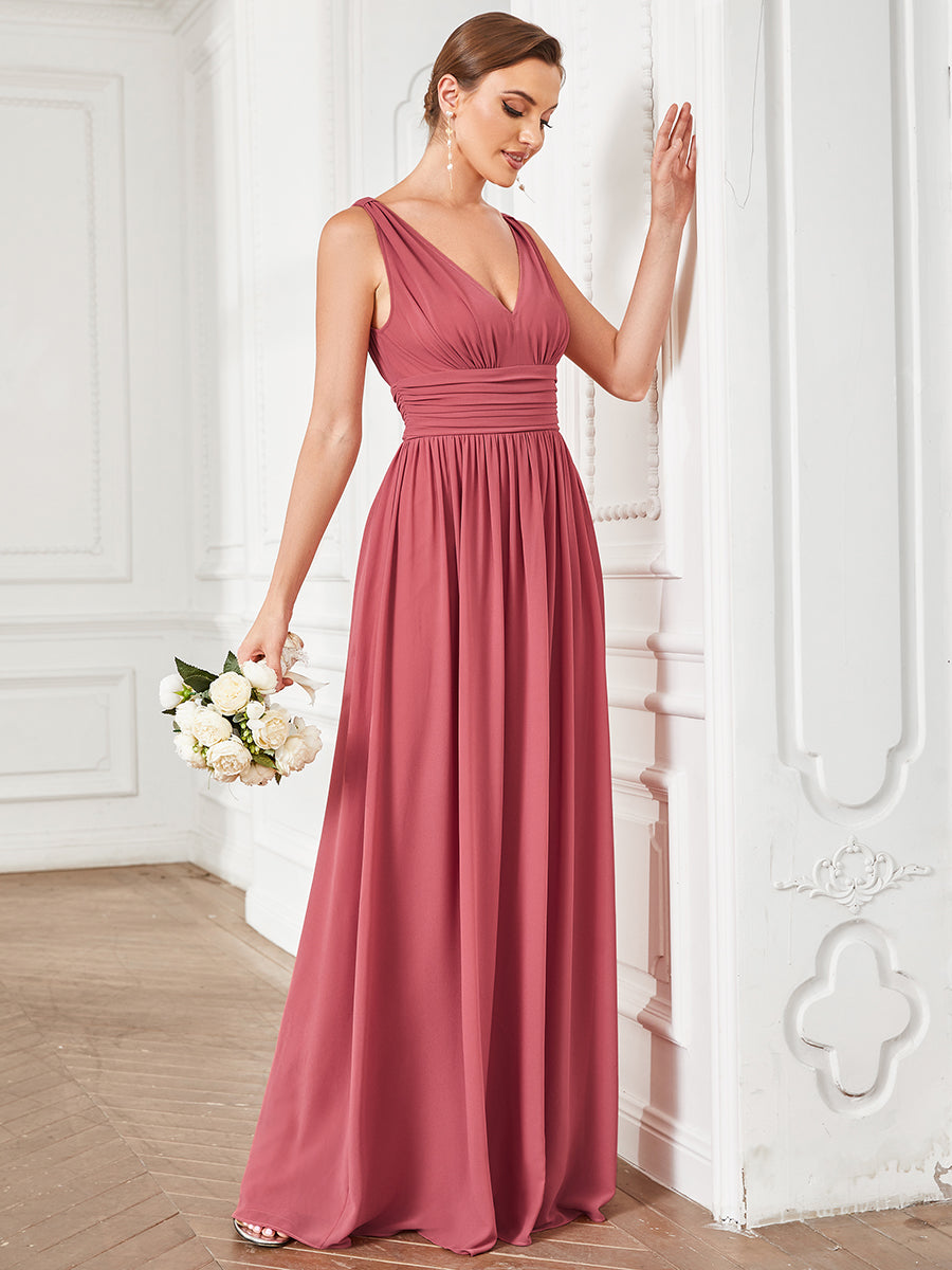 Elegant Double V-Neck Maxi Long Wholesale Bridesmaid Dresses