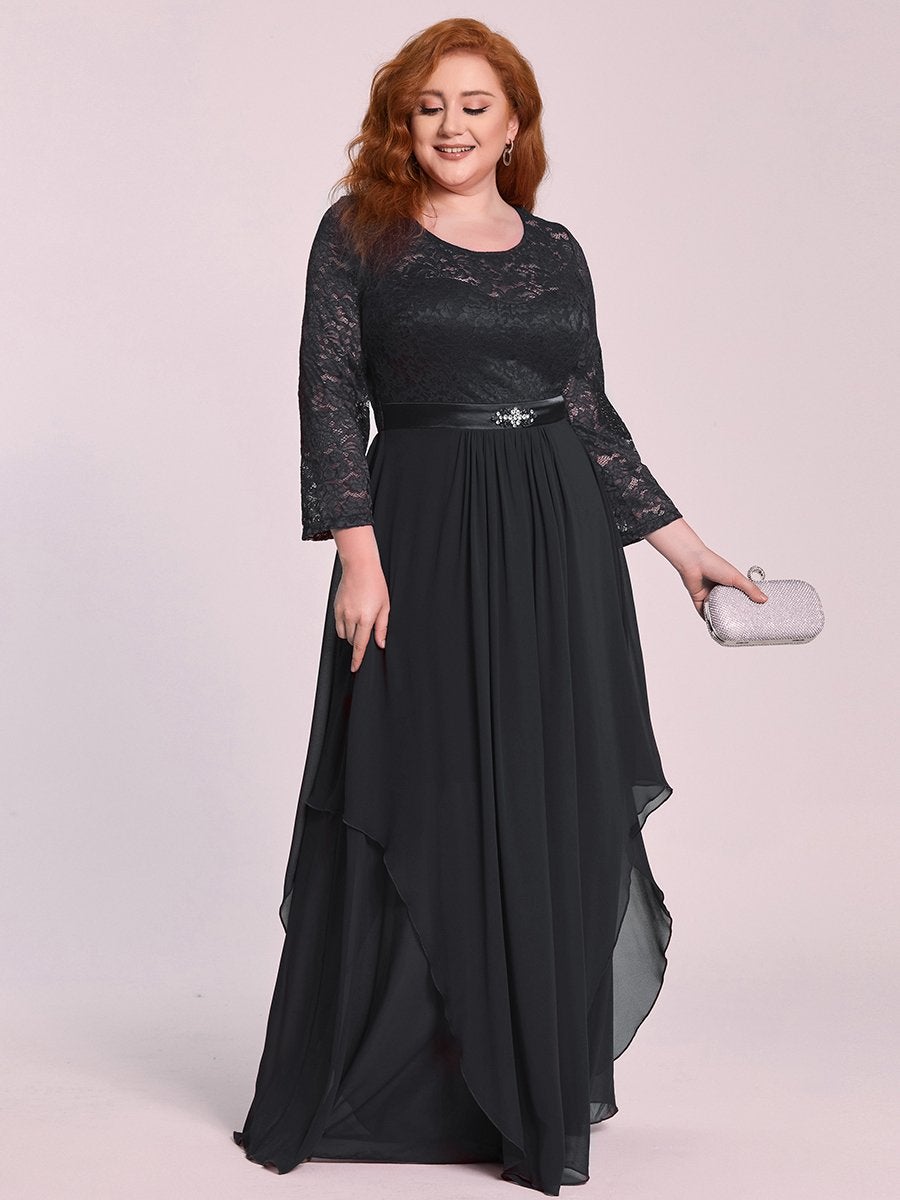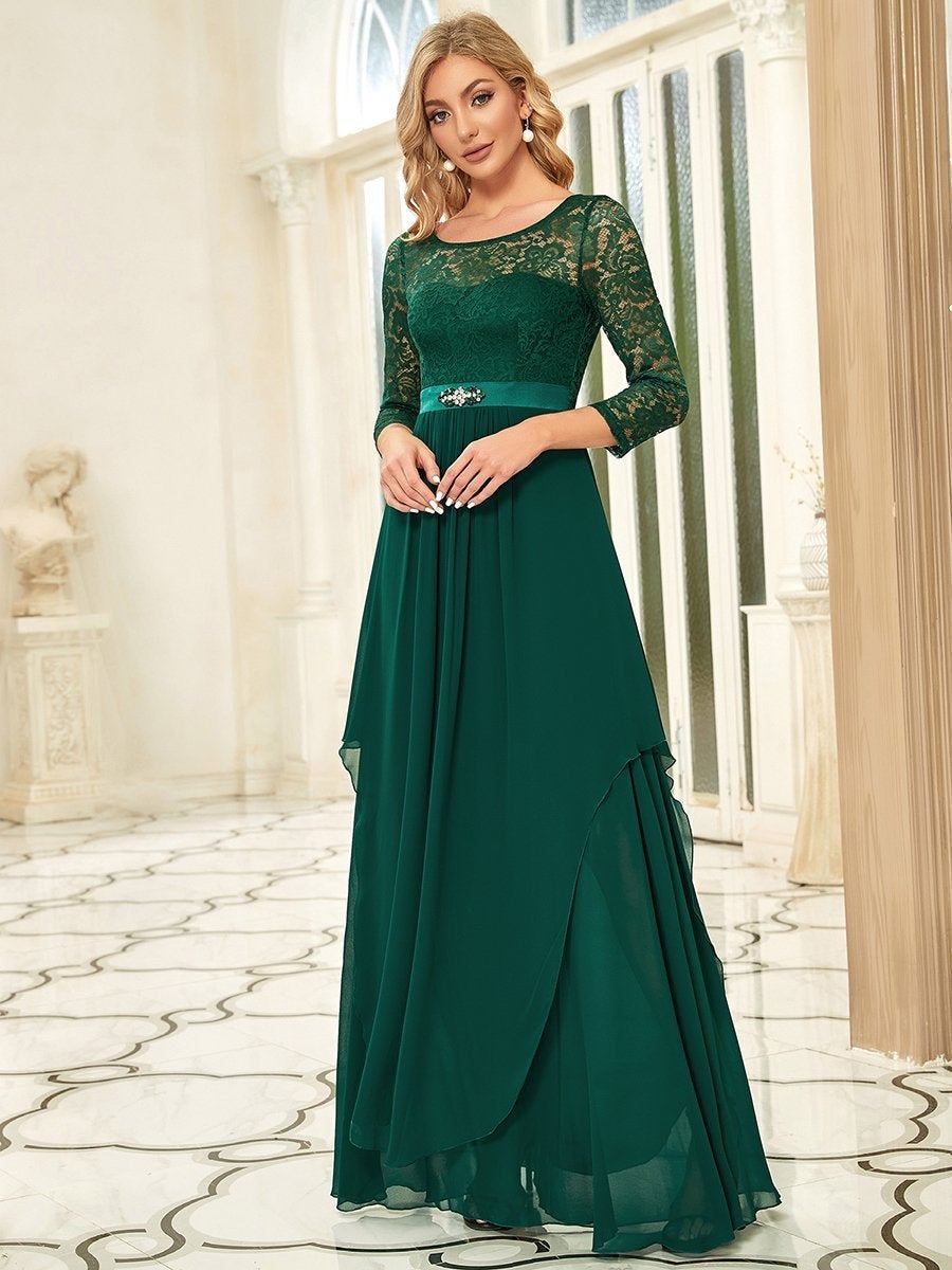 Structured lace dresses are always a great choice for an elegant look and you can never go wrong with it for any formal occasion. This floral lace bridesmaid dress is perfect for its round neckline and long lace sleeves if you are looking for an elegant and classic look.