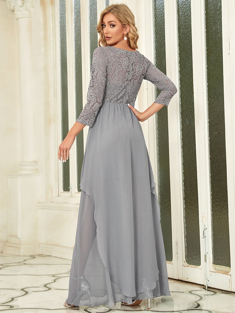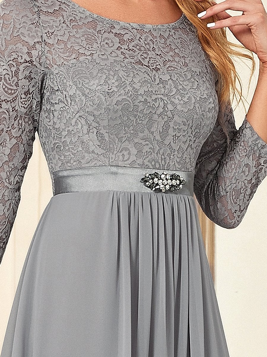 Round Neck Wholesale Chiffon Bridesmaid Dress With Long Lace Sleeves
