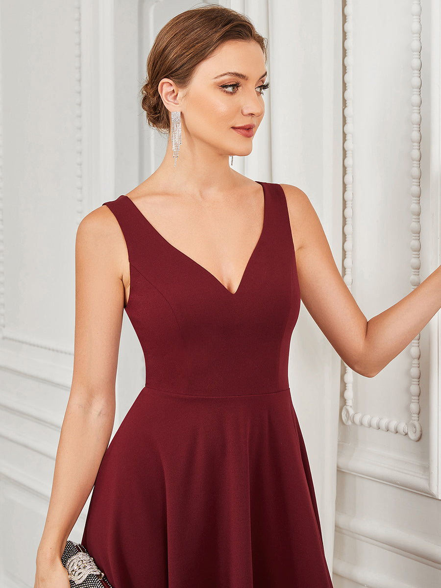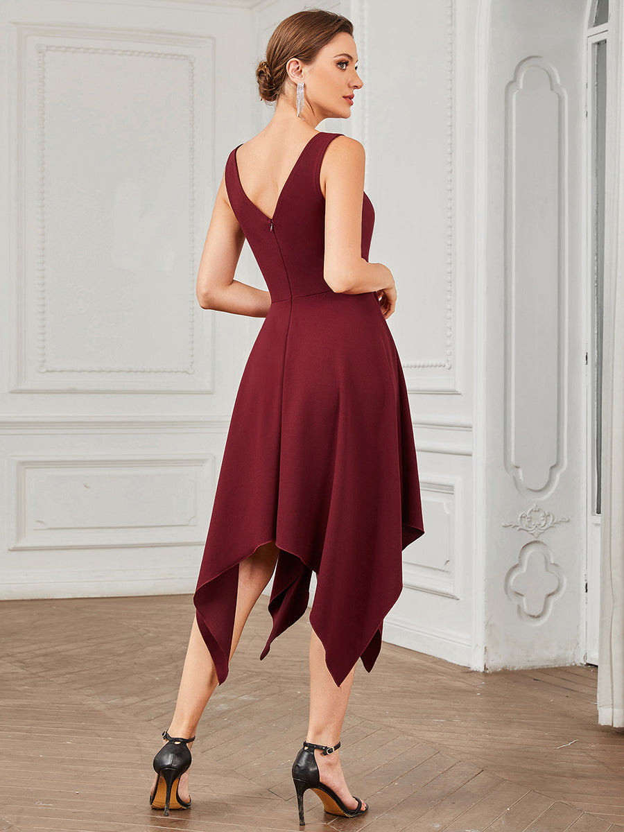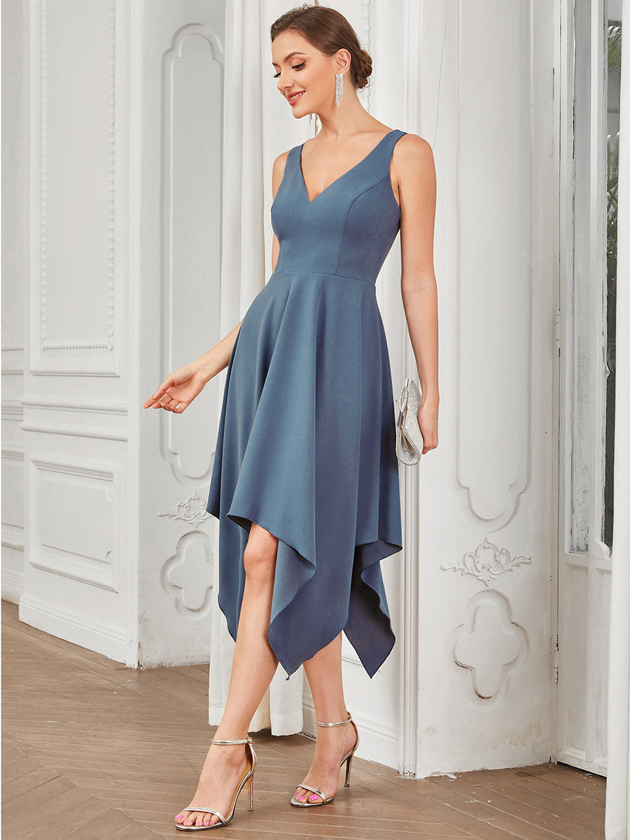 Deep V Neck Sleeveless Wholesale Evening Dresses with Asymmetrical Hem