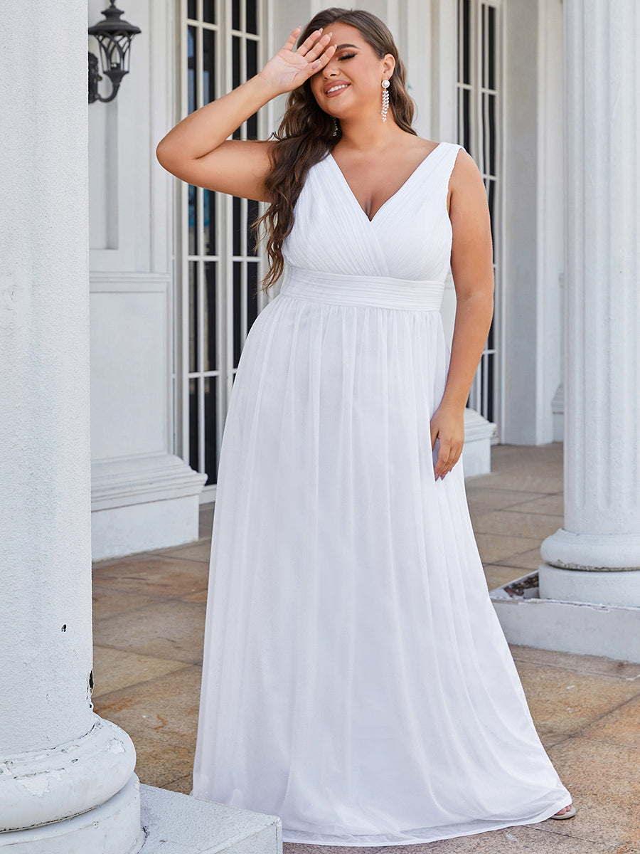 Double V Neck Maxi Long Plus Size Evening Dresses for Party