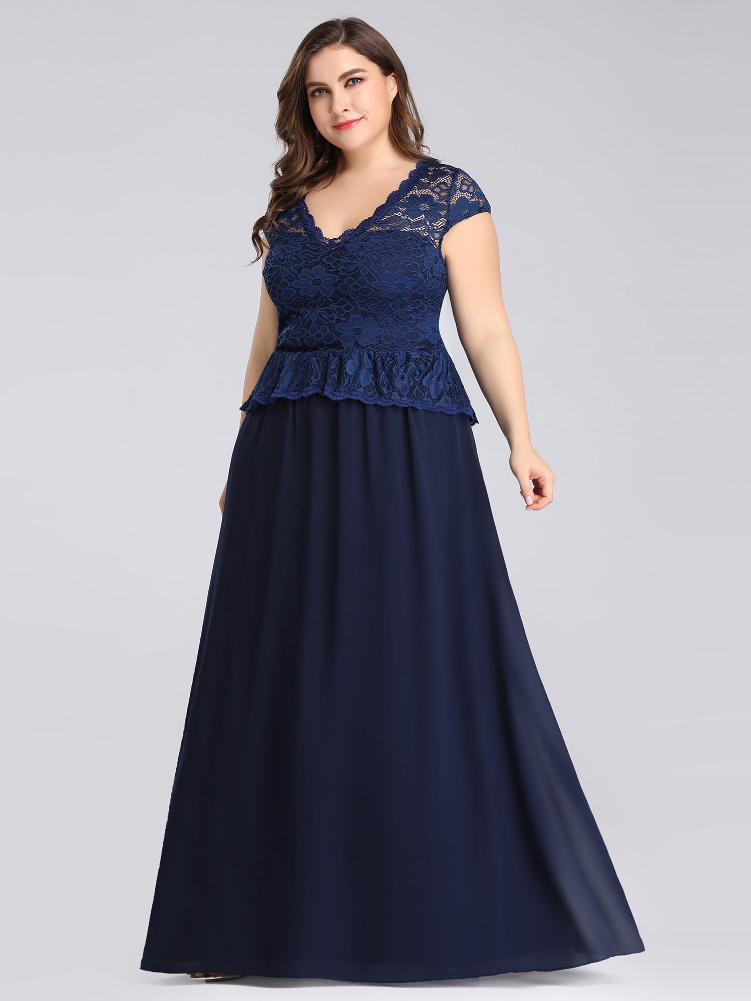 Plus Size Elegant Lace V-Necklinen Evening Dresses EP07672