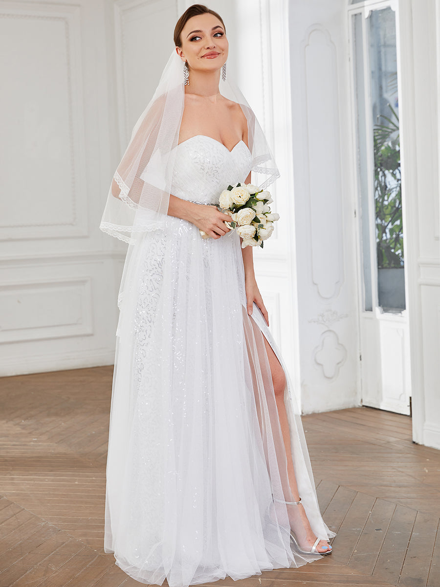 Gorgeous A Line Strapless Thigh High Split Wholesale Wedding Dresses
