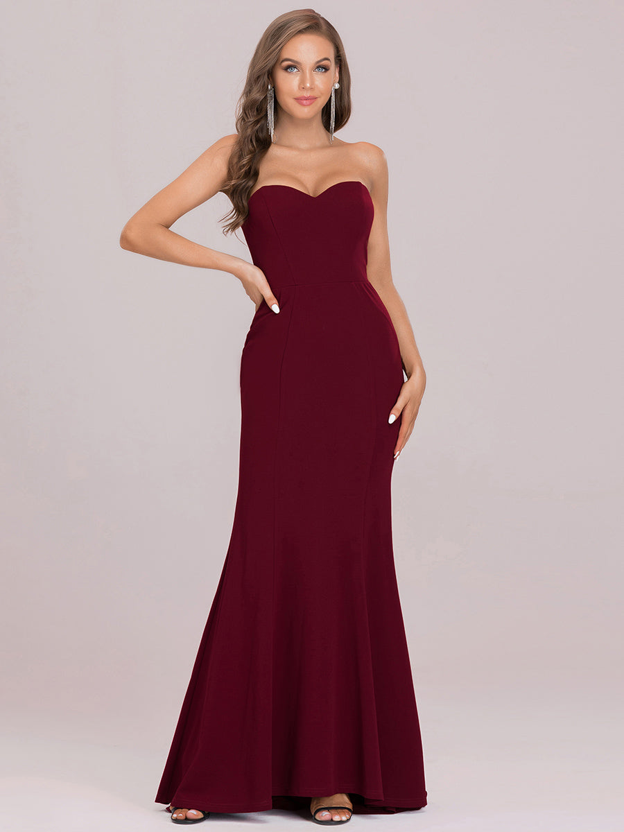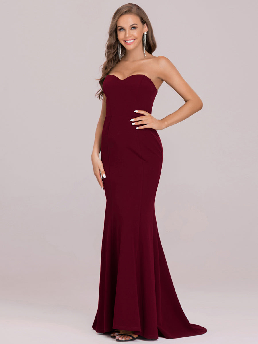 Be unique and look hot on your wedding day by wearing this gorgeous wedding dress. It features a fishtail silhouette and deep V-neck and is also sleeveless. We are sure that everyone will like and remember your wedding dress forever.