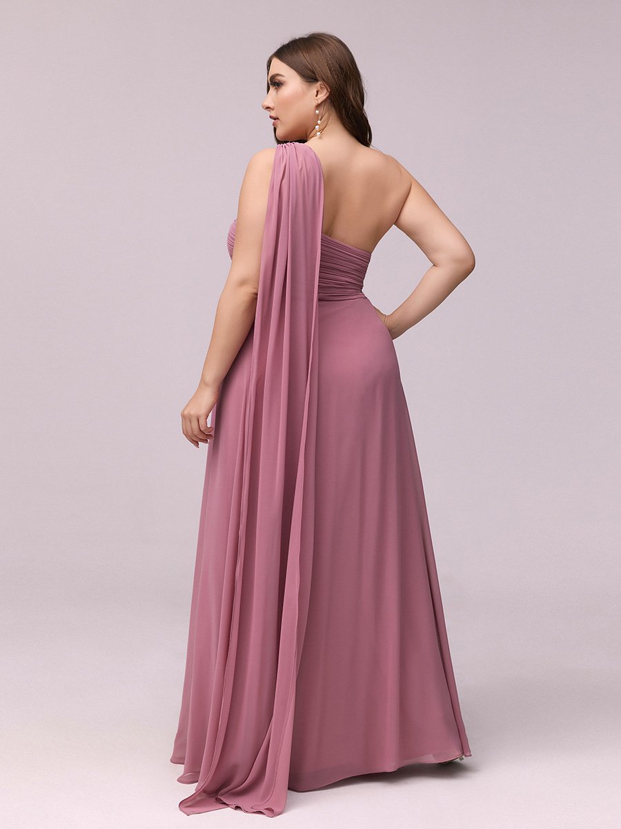 This classic one-shoulder design is fashion-forward while still being a closet staple any woman needs. This plus size dress features a ruched, fitted bust with a free-flowing silhouette over the lower half of the body, perfect for evening party, cocktail, prom, homecoming, graduation, weddings, and any other formal affair!