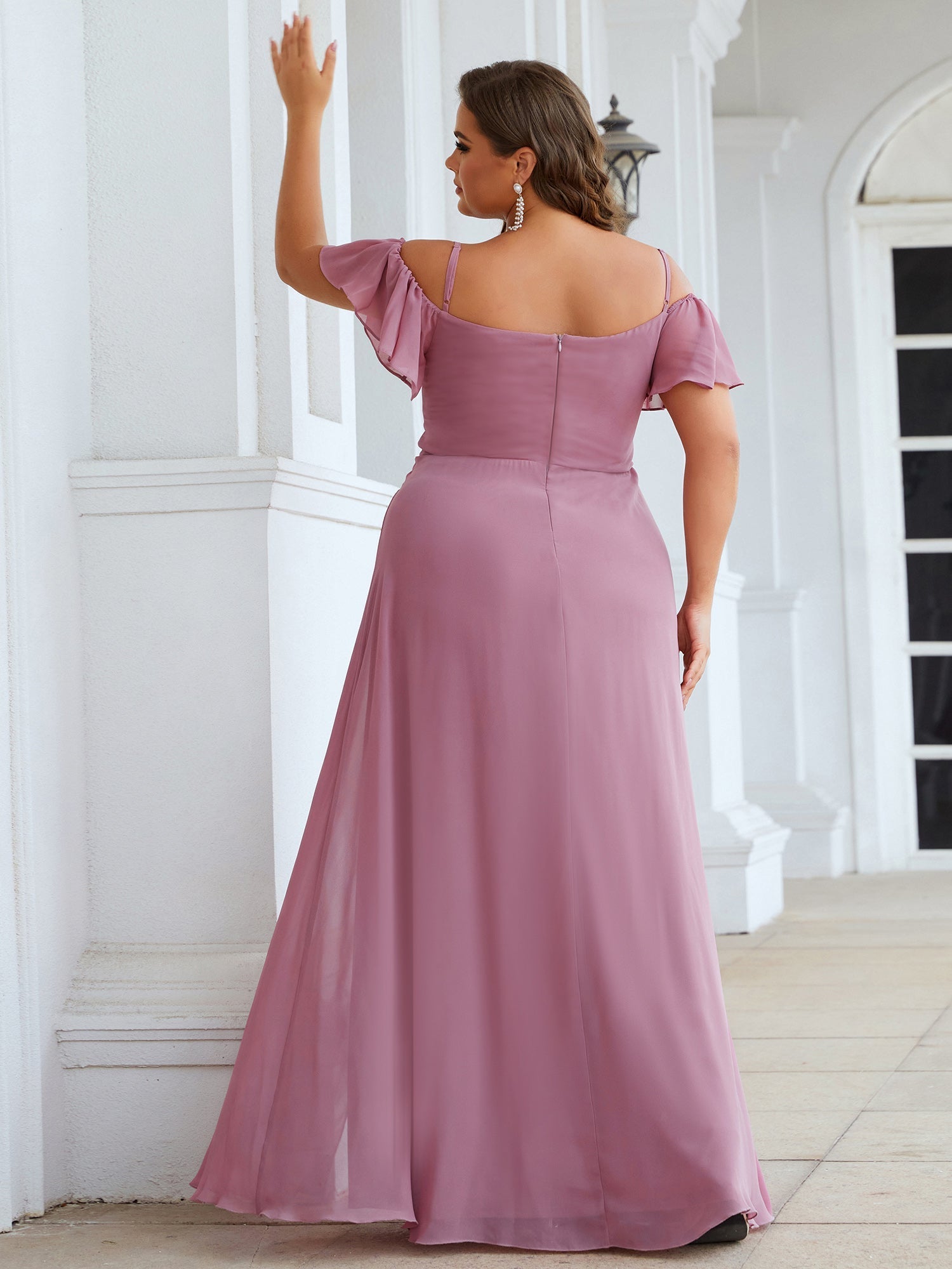 Get your hands on this bridesmaid dress and display it on your website because this dress will help you to achieve your profit goals. This bridesmaid dress for plus size women will be a great addition as it has a cute style. The style includes off-shoulders, an A-line silhouette, short flare sleeves, and spaghetti straps.