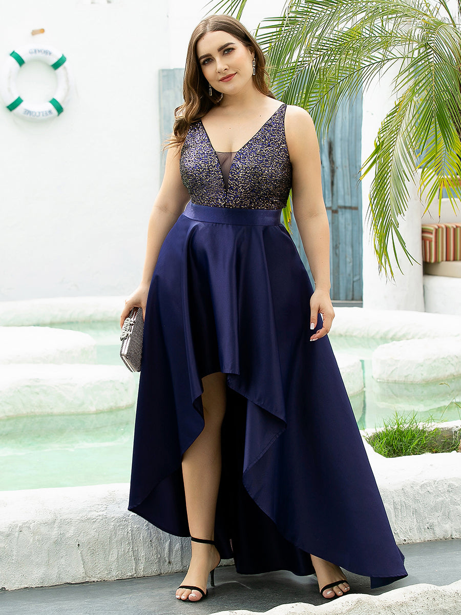 Featuring a sexy V neckline, an asymmetric skirt, this plus size evening dress is a perfect choice for people who are looking for an elegant look. We think this sparkly evening dress is perfect for evening party,cocktail,prom,homecoming,graduation,weddings,and any other formal affair!
