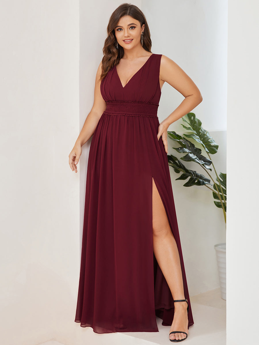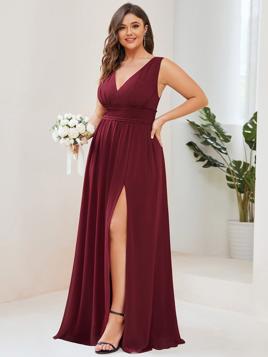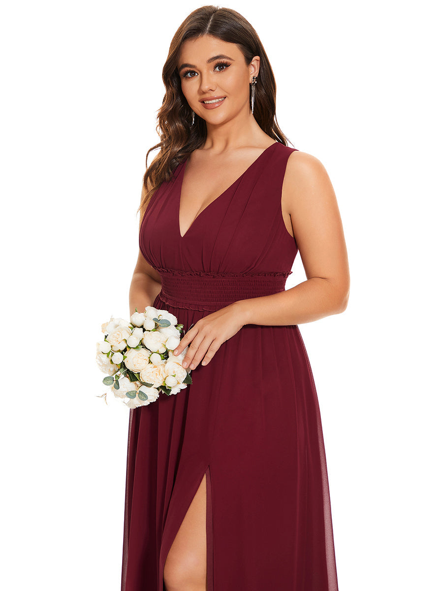 Plus Sleeveless Deep V Neck Thigh High Split Wholesale Bridesmaid Dresses