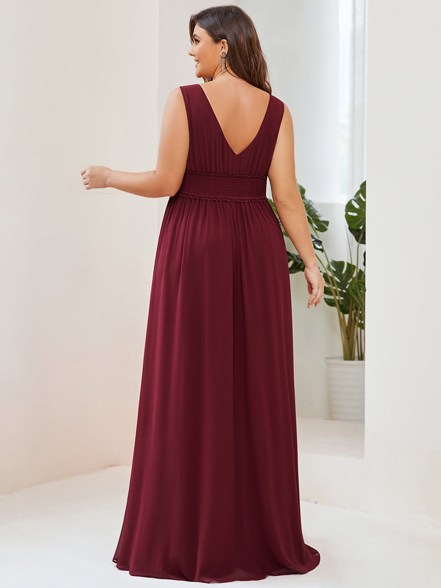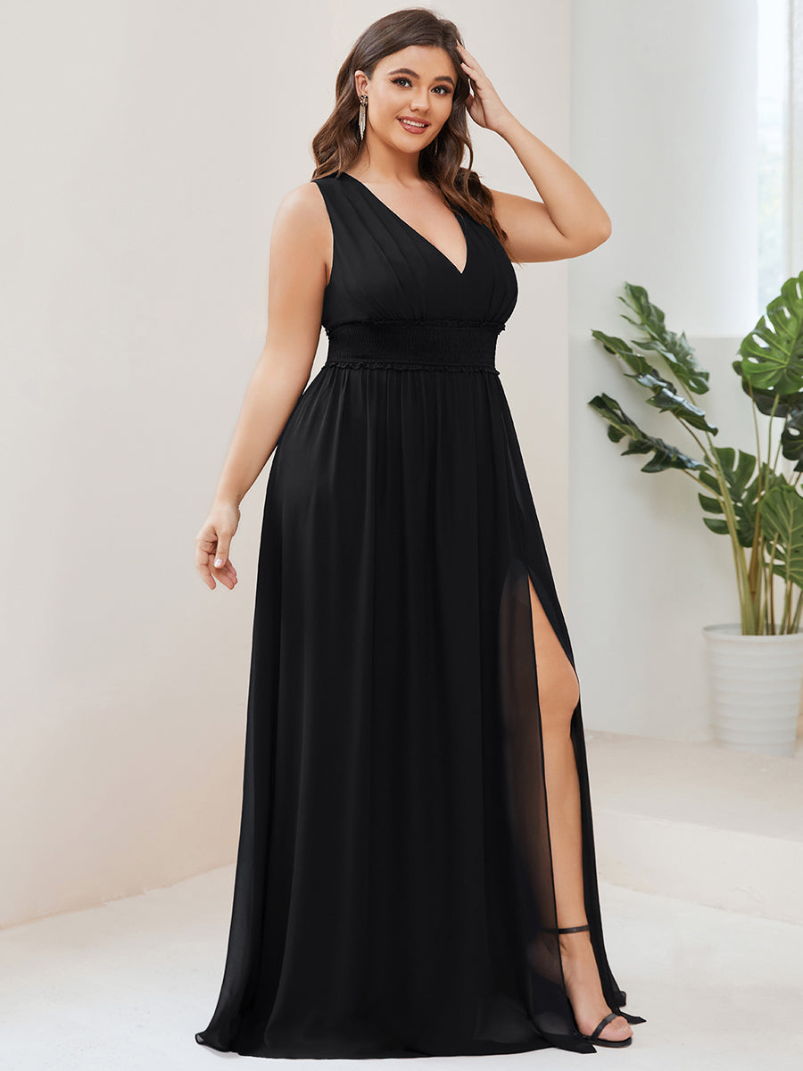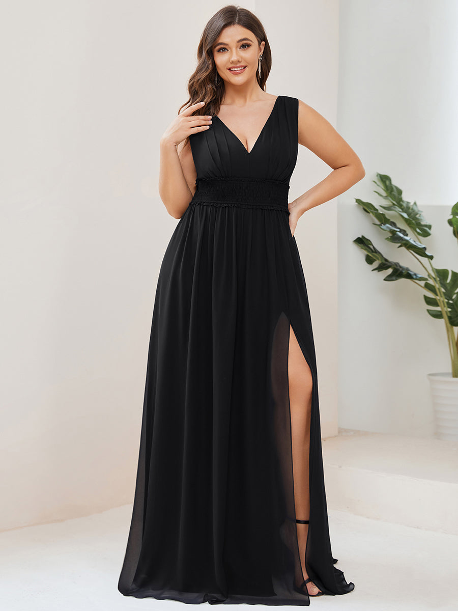 Plus Sleeveless Deep V Neck Thigh High Split Wholesale Bridesmaid Dresses