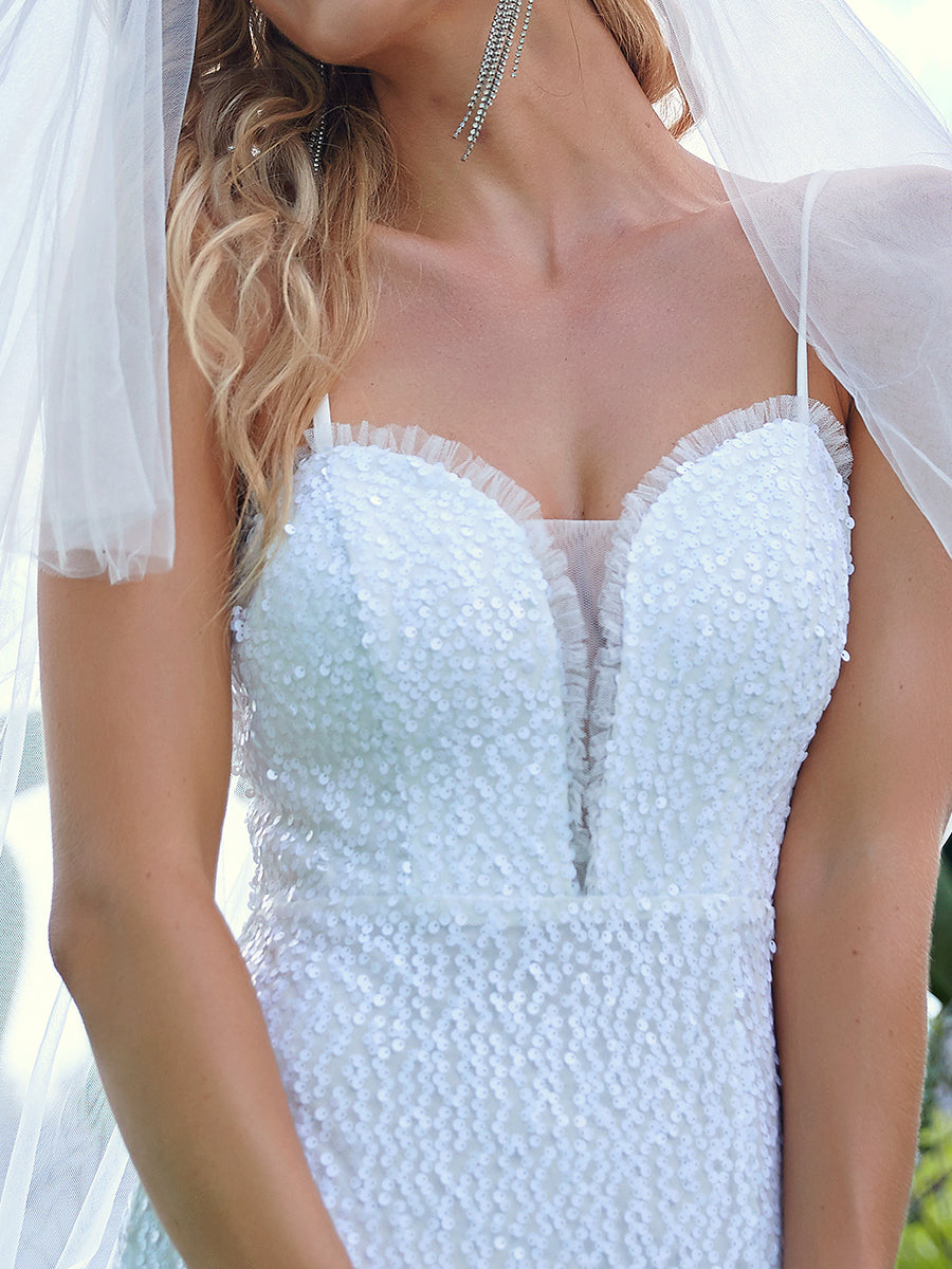 High Split Wholesale Sequin Wedding Dresses With Spaghetti Straps