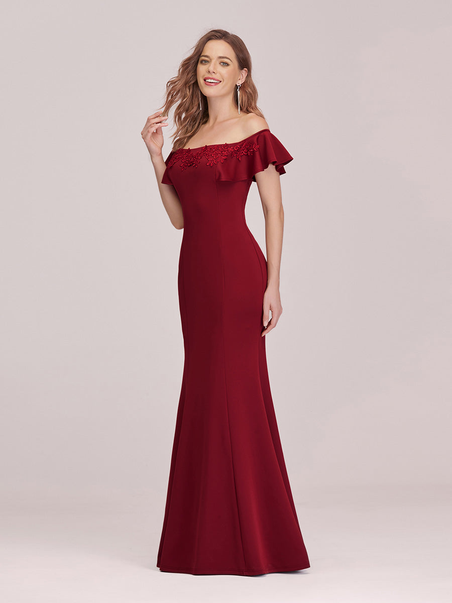 Off Shoulder Wholesale Stain Evening Dresses With Empire Waist
