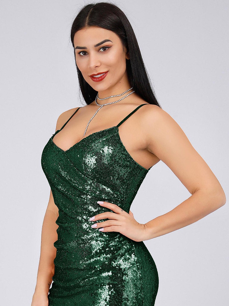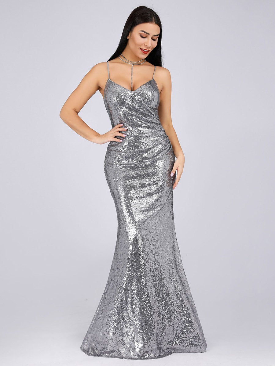 Sexy Spaghetti Straps Fishtail Sequin Wholesale Evening Gowns
