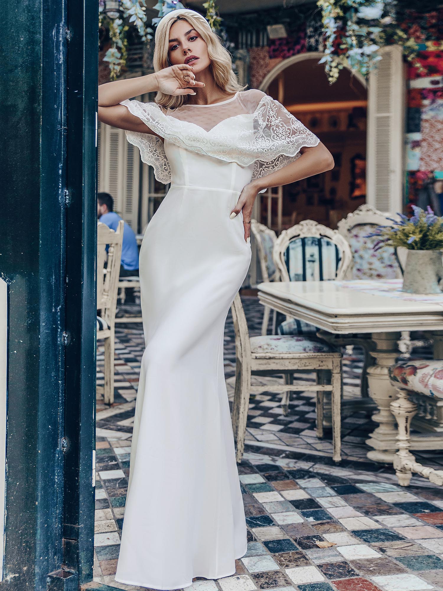Sweetheart Illusion Ruffle Sleeves Floor-Length Wholesale Wedding Dresses