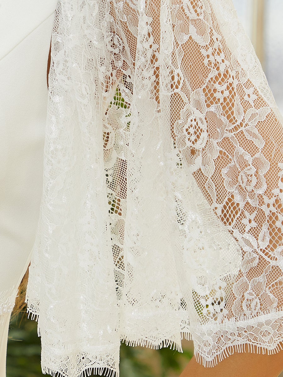 This gorgeous and alluring wedding dress has a beautiful design. The dress features a round neck, three-quarter see-through puff sleeves, and a fishtail silhouette. We are sure everyone will praise this dress.