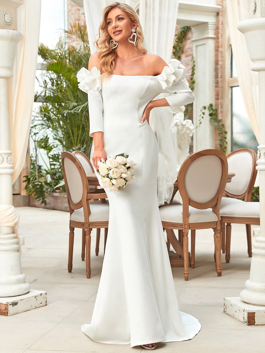 Off Shoulder Fishtail Floor Length Wholesale Wedding Dresse